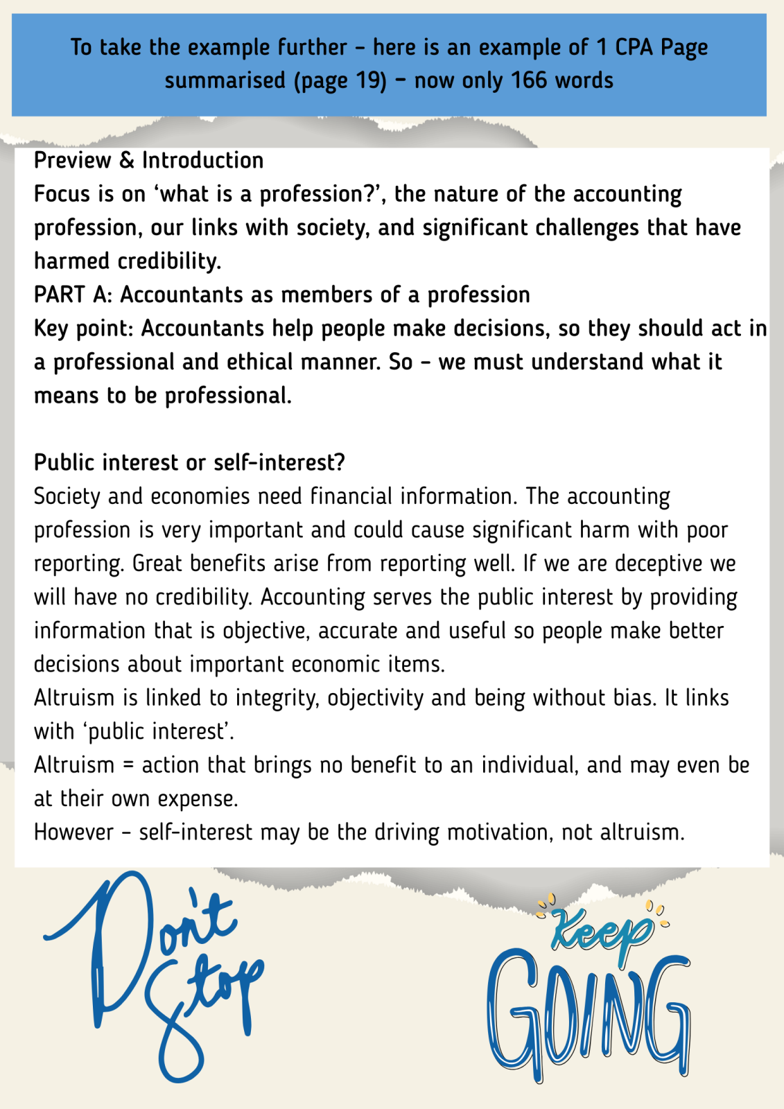 We often advise CPA students on how important it is to prepare module summaries – using your own words, not just borrowing notes from someone else. The benefit of summarising comes from: